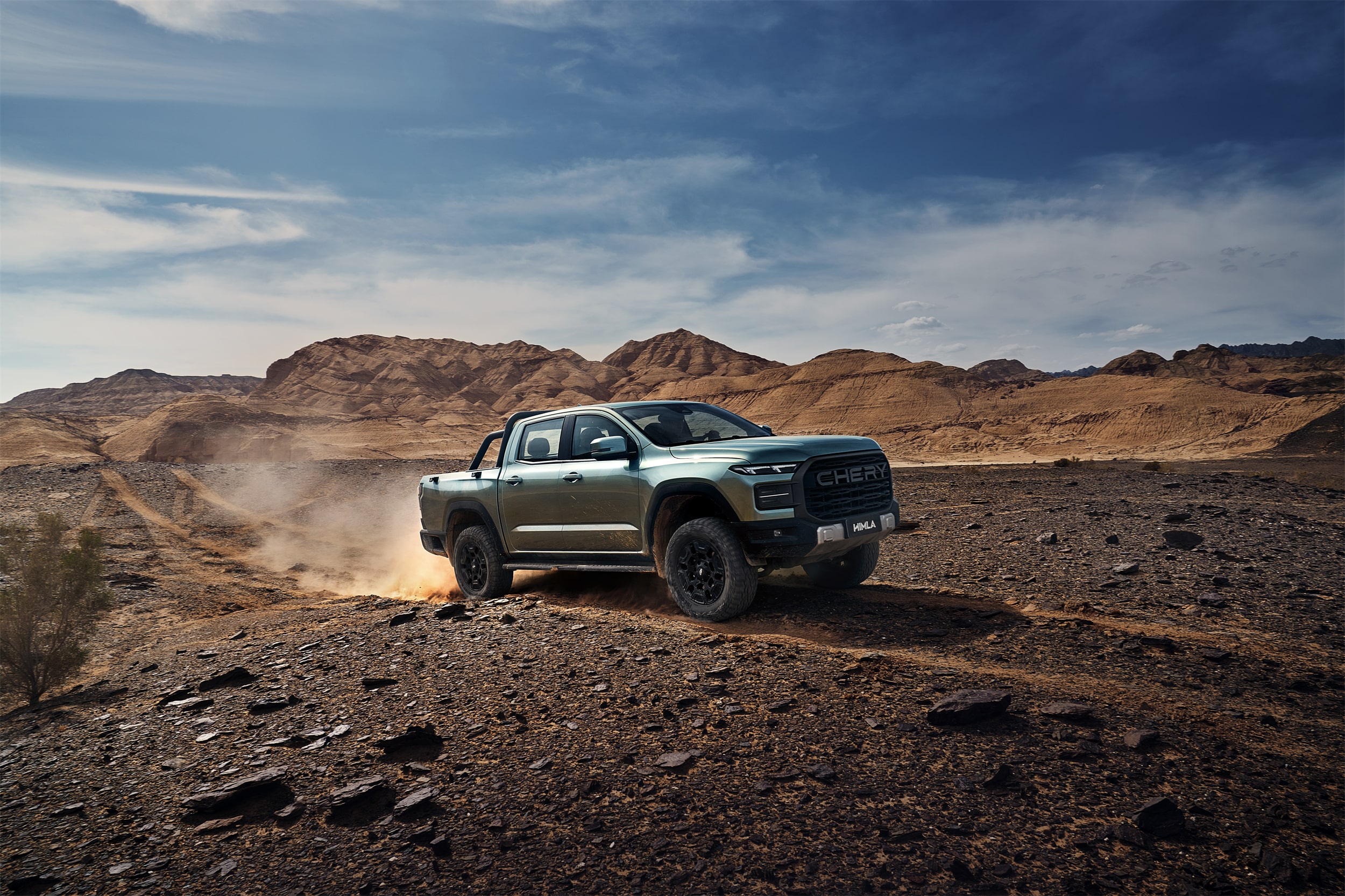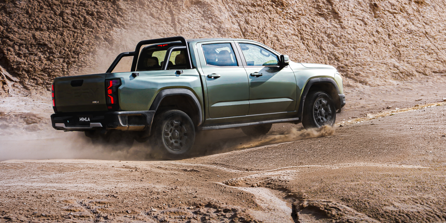 A Chery Himla 4x4 é uma pick-up média de chassi sob longarina que combina robustez para o trabalho com o conforto tecnológico de um SUV. Equipada com um motor 2.3 Turbo Diesel de aproximadamente 175 cv e 420 Nm de torque, ela oferece tração integral com modos 4H/4L e bloqueio de diferencial traseiro para enfrentar terrenos difíceis. O grande destaque é o interior moderno, que inclui um ecrã tátil de 15,6 polegadas, sistemas avançados de assistência à condução (ADAS) e uma capacidade de carga de 1.000 kg, posicionando-a como uma alternativa competitiva à Toyota Hilux e Ford Ranger em mercados como Cabo Verde e América Latina.